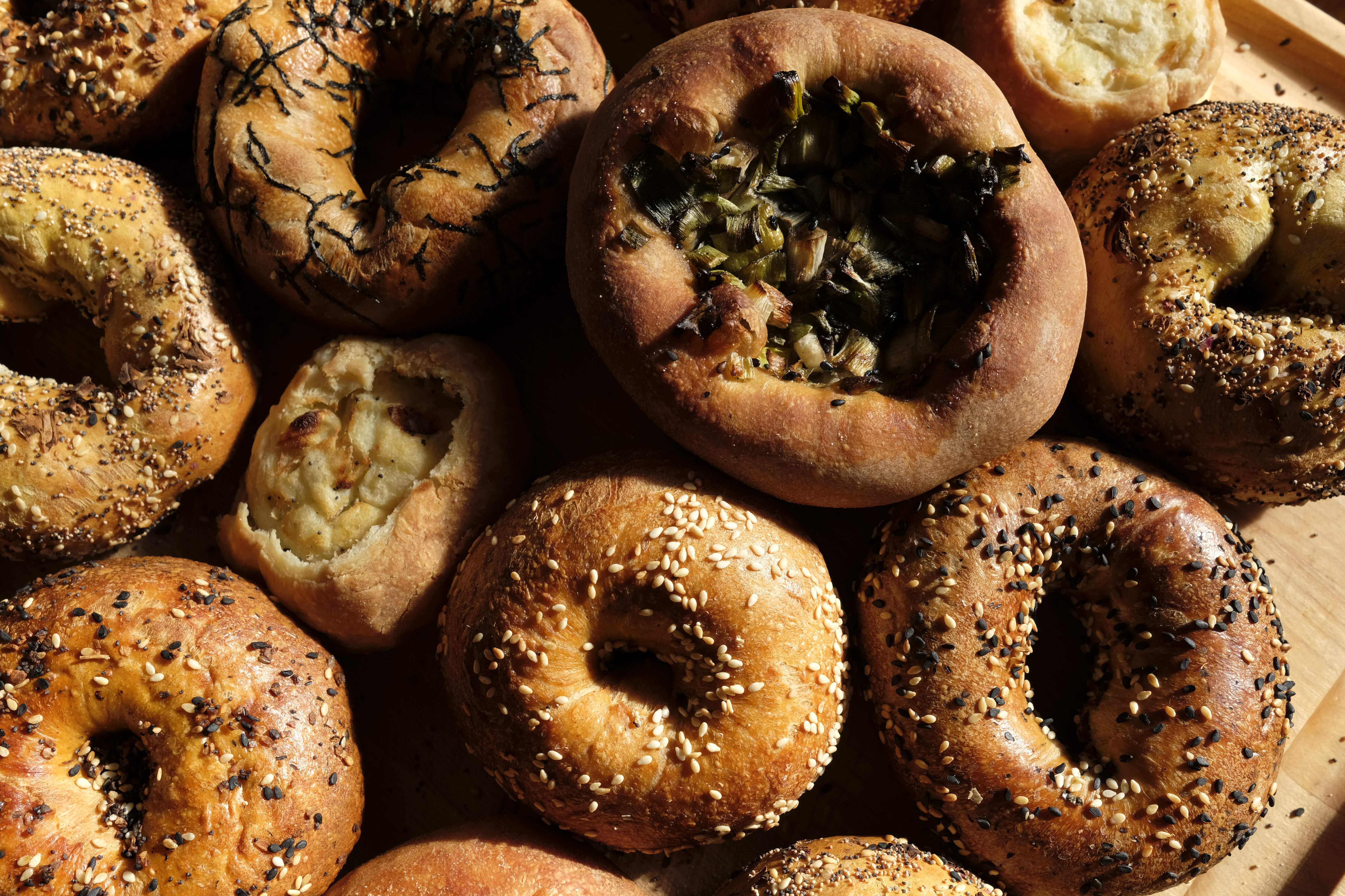 First, before the current mania, came Black Seed in 2017 with its Montreal-style bagels. That means made with eggs and sweetened, usually with honey, treated to a longer boil and baked in wood-fired ovens. They’re also shaped soon after being mixed versus the New Yorkers, which take a cold-ferment rest for at least a day first. The shaping for both subspecies is the same: You roll the dough out, rope-like, and then bring the ends together to form a ring. When they bake, the dough will puff up and the hole will shrink to resemble the bagels we know and love (and it’s cool if you love the Montreal bagels; we can respect each other and agree to disagree).
